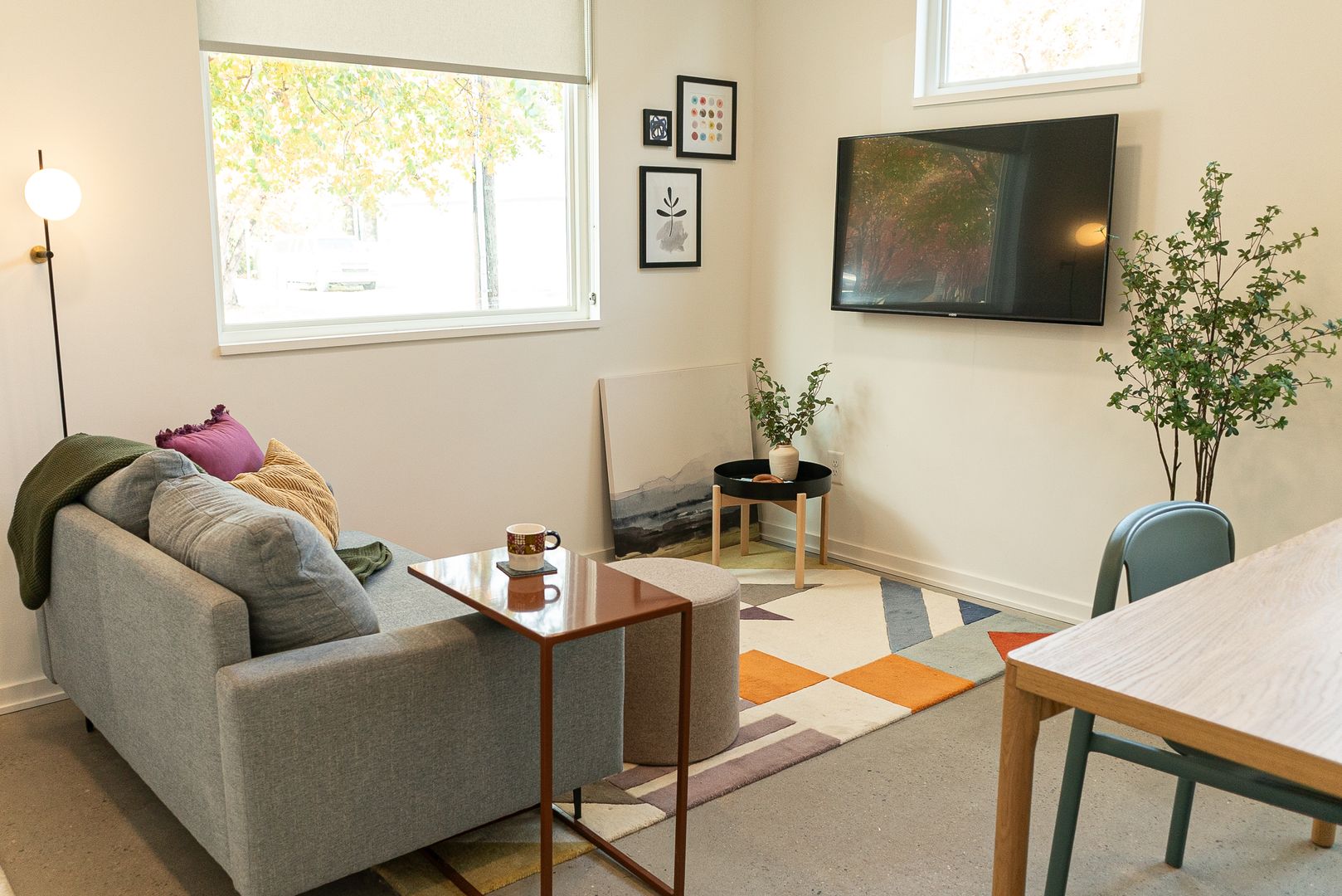 This modern flat is minutes walk to the best Downtown Raleigh has to offer -- practically next door to Transfer Food Hall.