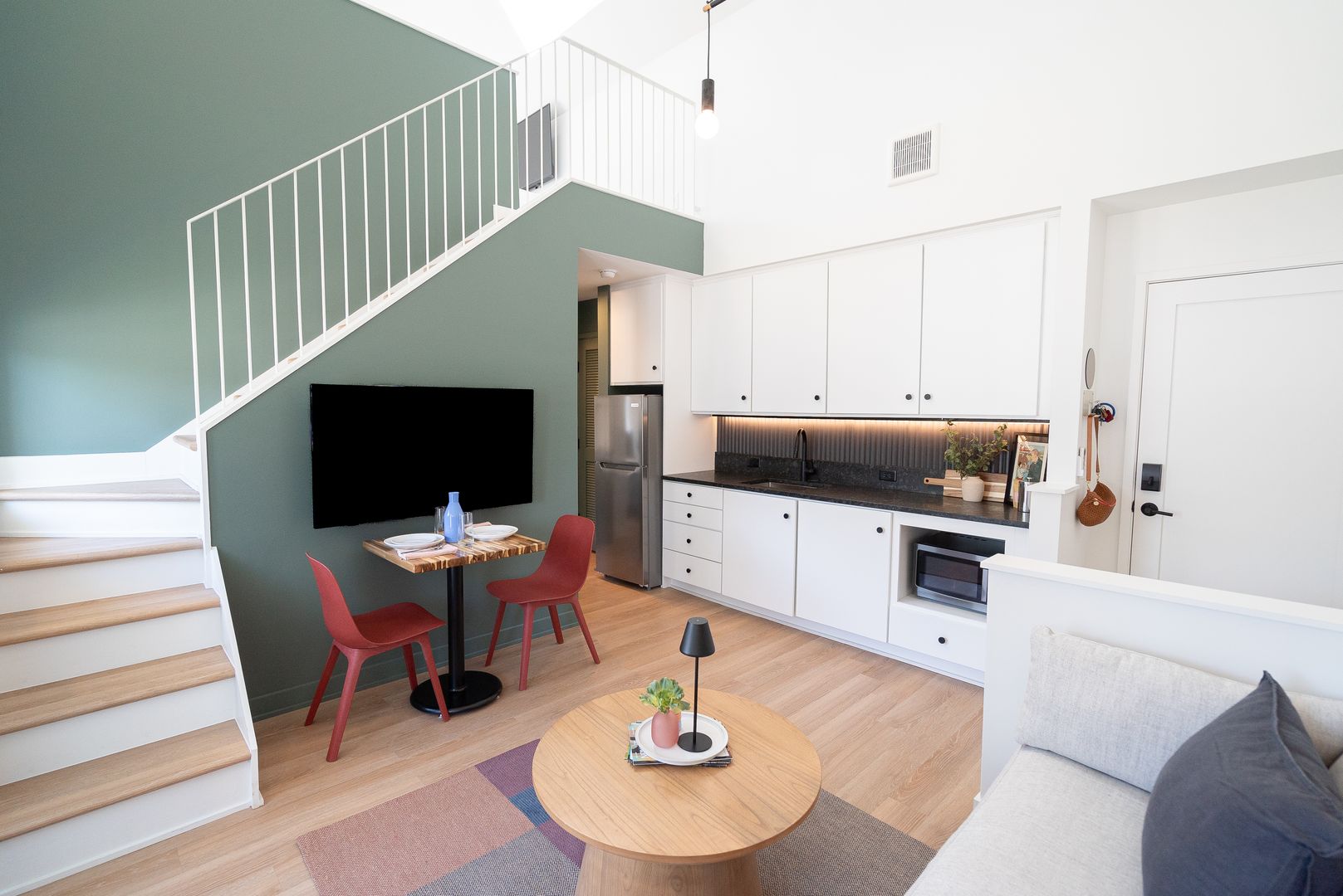 Bringing a pet? We designed this space with you in mind. There are tough, pet-friendly floors and performance-fabric furniture — all in a super-walkable neighborhood close to pet-friendly bars, restaurants and parks.
