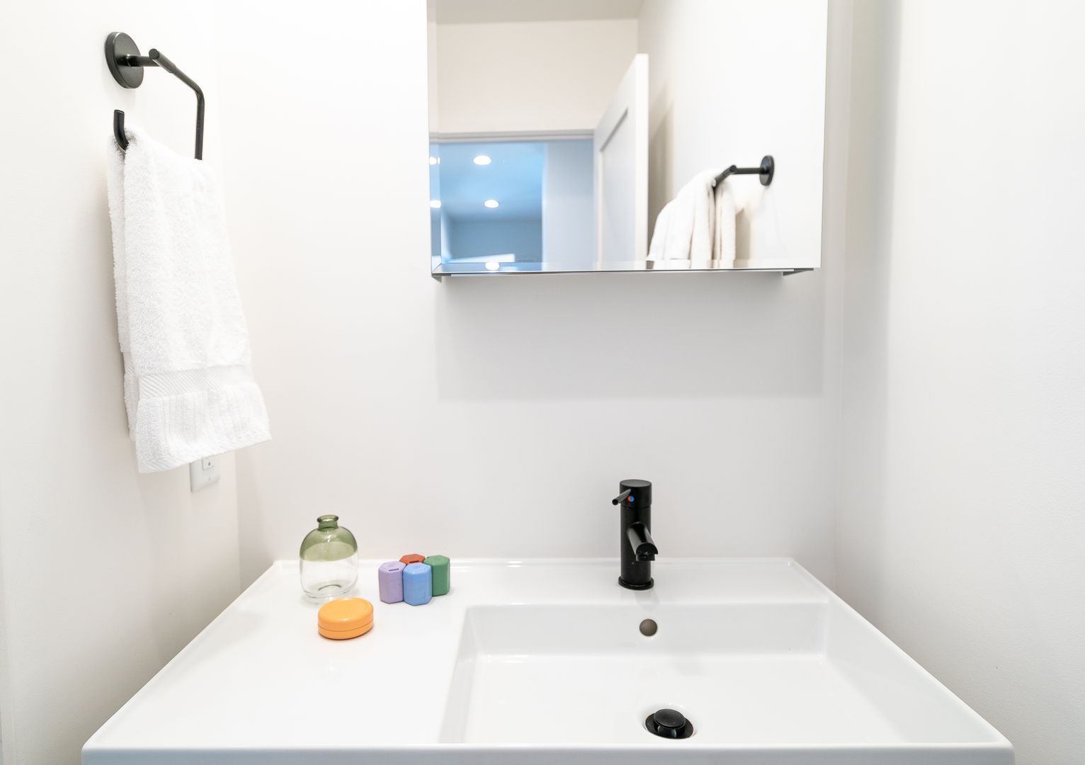 In our flat, you’ll have a well-equipped dining zone with brand new elite appliances, including standing freezer/fridge, 2-burner induction cooktop, counter oven & airfryer, electric kettle, coffee maker (with our Local Post Roast from local coffee roaster, Cafecito).