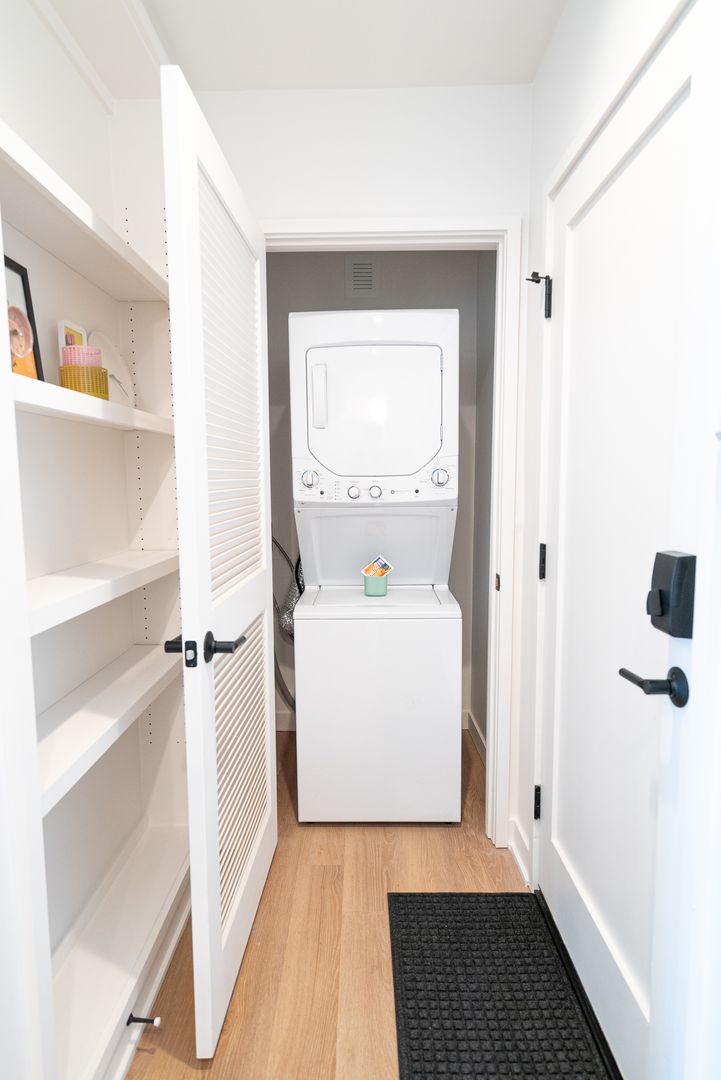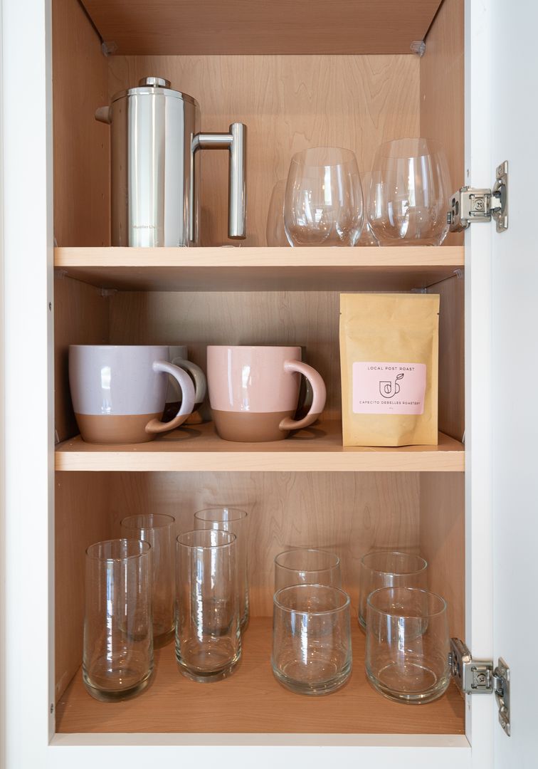 Our furnishings are a mix of vintage finds, custom pieces, and works of art from local makers. No wall-to-wall, flat-packed junk in here! And there’s ample storage in closet space and built-in shelving. Just drop your stuff and go!