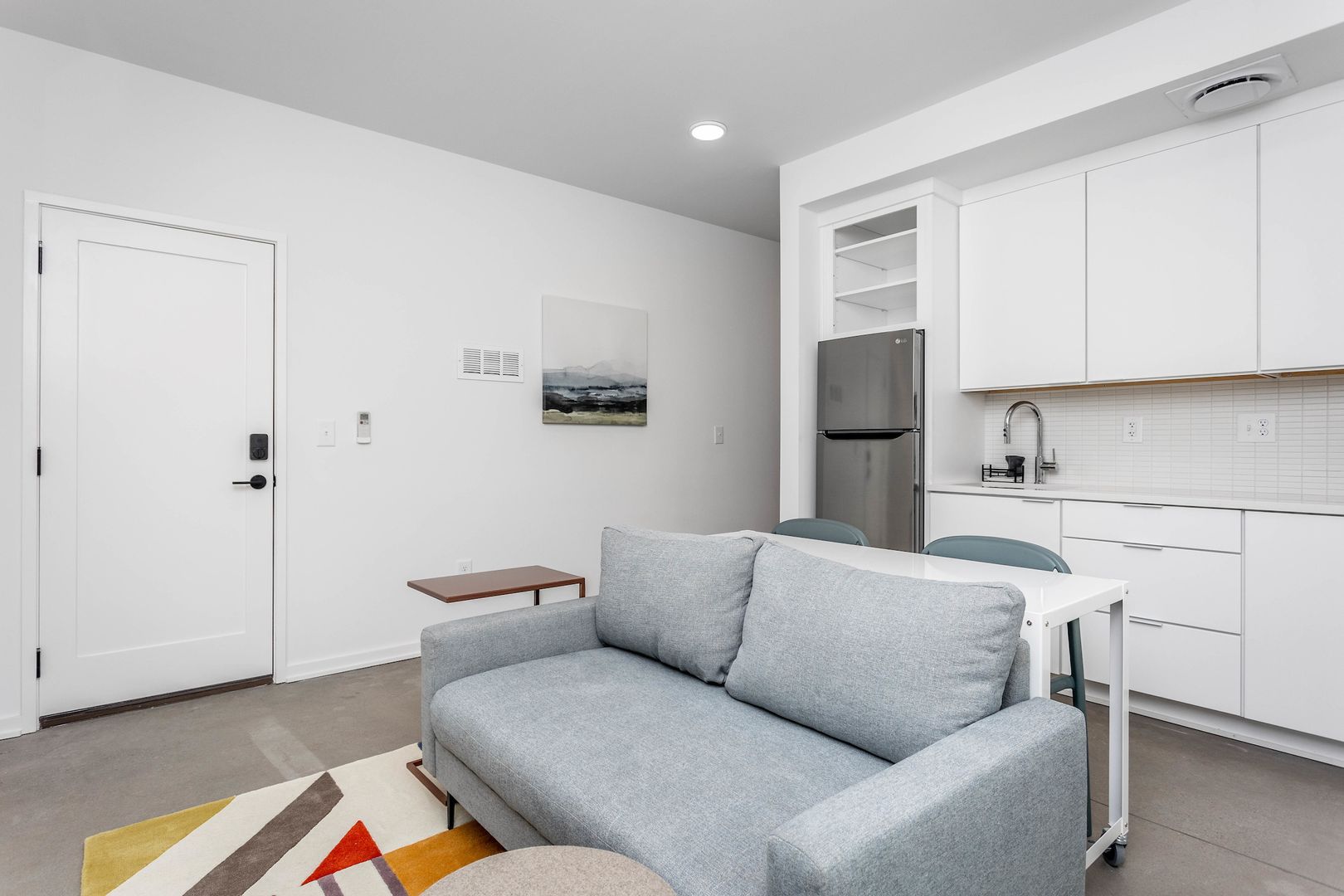 This modern flat is minutes walk to the best Downtown Raleigh has to offer -- practically next door to Transfer Food Hall.